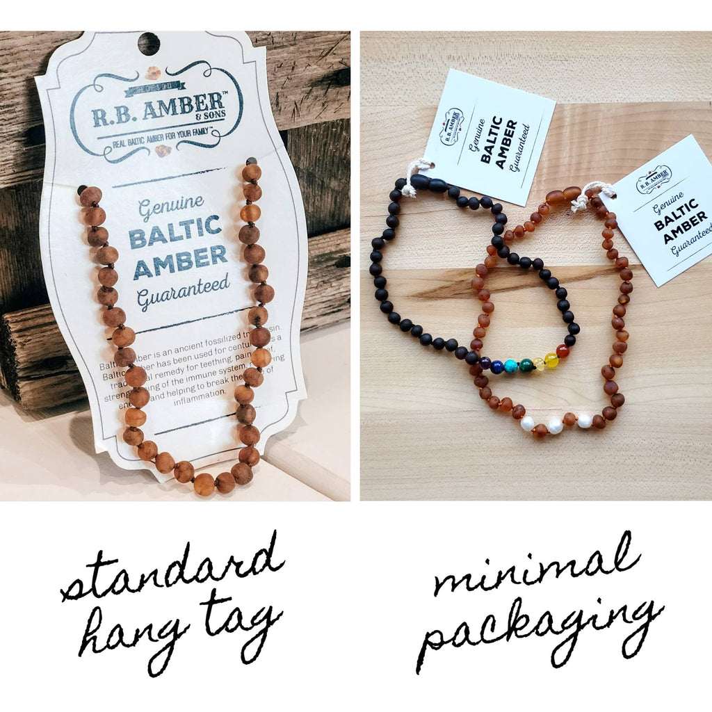 R.B. Amber Jewelry - Raw Cognac Bean Baltic Amber Necklace: Standard Hang Tag / 14-15 inches